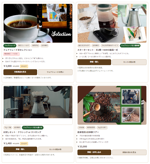 はじめての方にも、いつもの方にも。くどう珈琲ならではの“焙煎したて”をお届けします。まずは一杯で体感を。